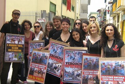 Domenica, 22 maggio, il gruppo Animanimale, munito di volantini e striscioni, è andato a Camposano, in provincia di Napoli, per manifestare il proprio dissenso alla corsa degli asini, intorno al quale, in buona sostanza, ruotava tutto il Palio del Casale.
