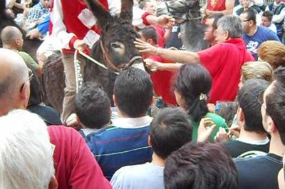 Ci siamo ritrovati ad assistere a scene di una violenza, gratuita: qualcuno ha picchiato il proprio asino, staccando un ramo dall'albero. In una stradina laterale e perpendicolare rispetto a quella dove si svolgeva il palio, si trovavano gli asini, senza che fosse data loro un po' d'acqua, e la giornata era torrida.