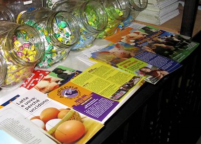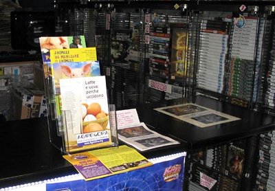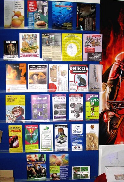 Ricevuto di mattina, sono stati subito esposti, locandine comprese, e diversi materiali distribuiti a: un negozio di animali che rifiuta la vendita di animali, una erboristeria con proprietario vegetariano, un altro negozio con proprietario ancora onnivoro, una palestra con istruttore quasi totalmente vegano, un parrucchiere e un animatore turistico entrambi verso una scelta etica di alimentazione. Tutti si sono detti d'accordo ad esporli e divulgarli, e d'accordo con le idee descritte, con la disponibilità a leggerli anche per un cambiamento personale.