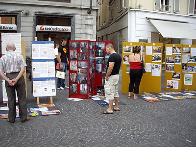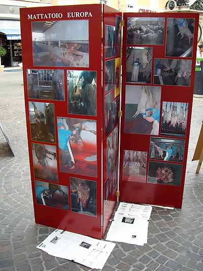 La mostra è stata molto visitata da persone di ogni eta'. C'è stata qualche lamentela per la mostra sui macelli: qualcuno l'ha definita una "violenza psicologica", qualcun altro ha detto che non sta bene mostrare queste immagini in una piazza con tanti bambini, un altro ancora ha detto che ha fatto la guerra e ha visto molti cadaveri umani, eppure le immagini degli animali squartati le ha trovate più impressionanti ed era perplesso sull'opportunita' di mostrarle... ma a parte questi casi, molti altri dicevano che la mostra era completa e ben fatta, c'era una parte più "forte" ma "questa è la realtà" e una parte più "soft".