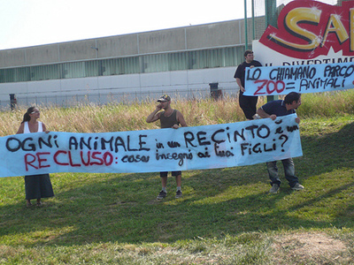 Messaggio che ovviamente comprendeva chiarire che un recinto resta una gabbia, anche se più grande, che gli zoo non sono concepibili in una società evoluta, che gli animali non sono i nostri schiavi, che nessun animale vuole stare in un recinto, e che l'unico modo per far chiudere queste "carceri per innocenti" è non frequentarle e quindi non sponsorizzarle pagando il "biglietto".
