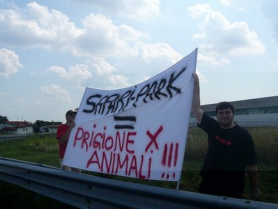 Era la prima volta nella storia che il Safari park veniva contestato e la cosa ha provocato una certa agitazione nella dirigenza del "parco-reclusi" che, basita, è accorsa alla rotonda interrogandosi su che mai avessimo da ridire, visto che gli animali "sono trattati benissimo".
