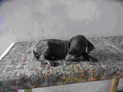 Il cagnolino Sarna Peixe appena raccolto dal mercato del pesce