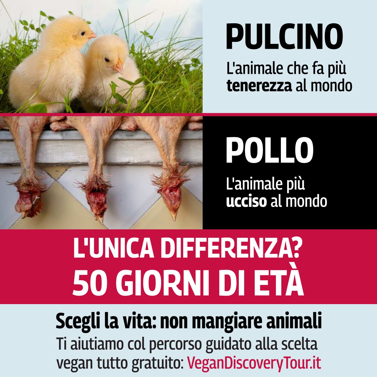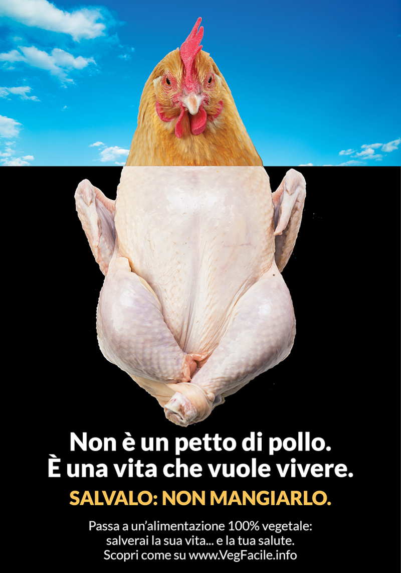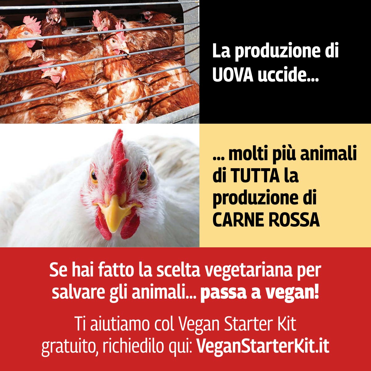 Abbiamo realizzato 6 mini-campagne in forma di immagine da divulgare on-line, per sensibilizzare sulla sofferenza di polli e galline: condividile sui social, accompagnate dal link al Vegan Starter-kit e invita altri a farlo!